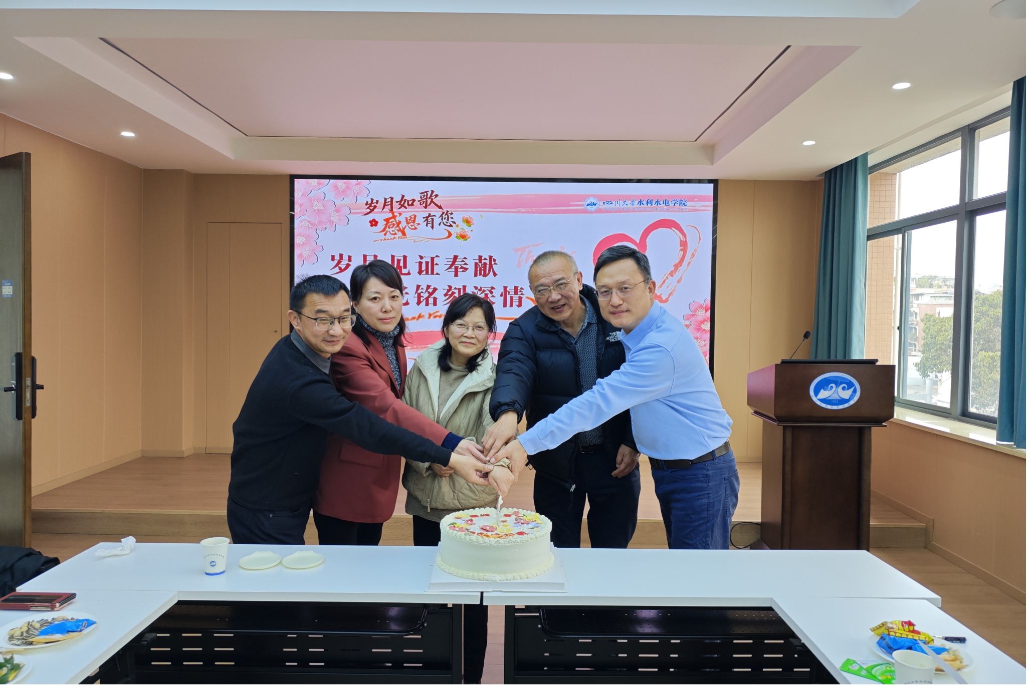 这个大家庭深厚的情谊与美好的祝愿。仪式最后,大家共同分享纪念蛋糕并合影留念,为这场充满温情与敬意的欢送会画上圆满句号。